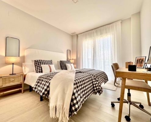 Apartamento con ventilación mecánica controlada, amplios ventanales, control de Acceso de puerta entrada, preinstalación de aire acondicionado, aerotermia, domótica, garantía Postventa, Preinstalación recarga de vehículos. Edificios con aislamiento térmico. CEE B