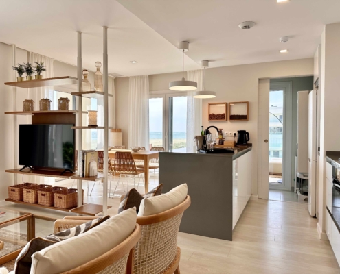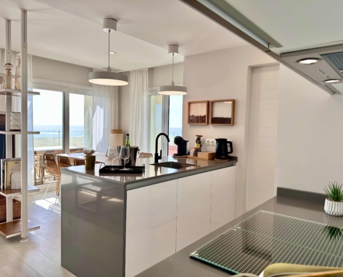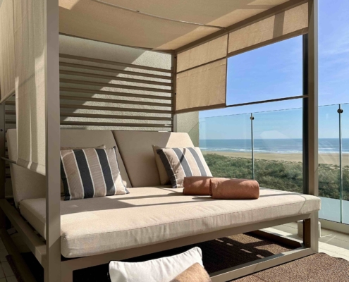 El encaje del edificio perpendicular a la línea de mar nos permite optar por viviendas frontales al mar o por la orientación que más nos guste disfrutando del sol por la mañana o por la tarde y gozando de espectaculares vistas al Atlántico desde las amplias terrazas.