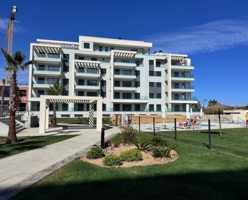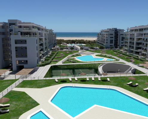 Viviendas de dos y tres dormitorios con magníficas vistas al mar. Fantásticas y amplias terrazas, jardines privativos en viviendas en planta baja, amplias zonas comunes, pistas de pádel, sala comunitaria, todo en una gran urbanización.